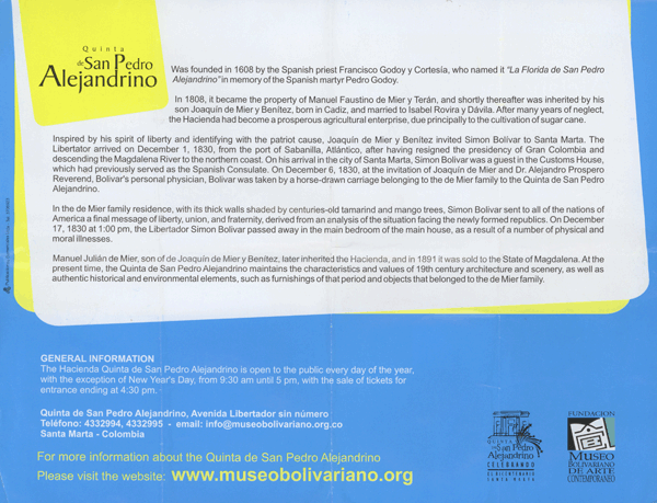 Ich erstehe also einen Hut und sehe mir noch ein wenig die Stadt an, u.a. die Casa Natal de Antonio Ricaurte, ein Märtyrer der Befreiungskriege, man könnte sagen ein früher Selbstmordattentäter auf der richtigen Seite.